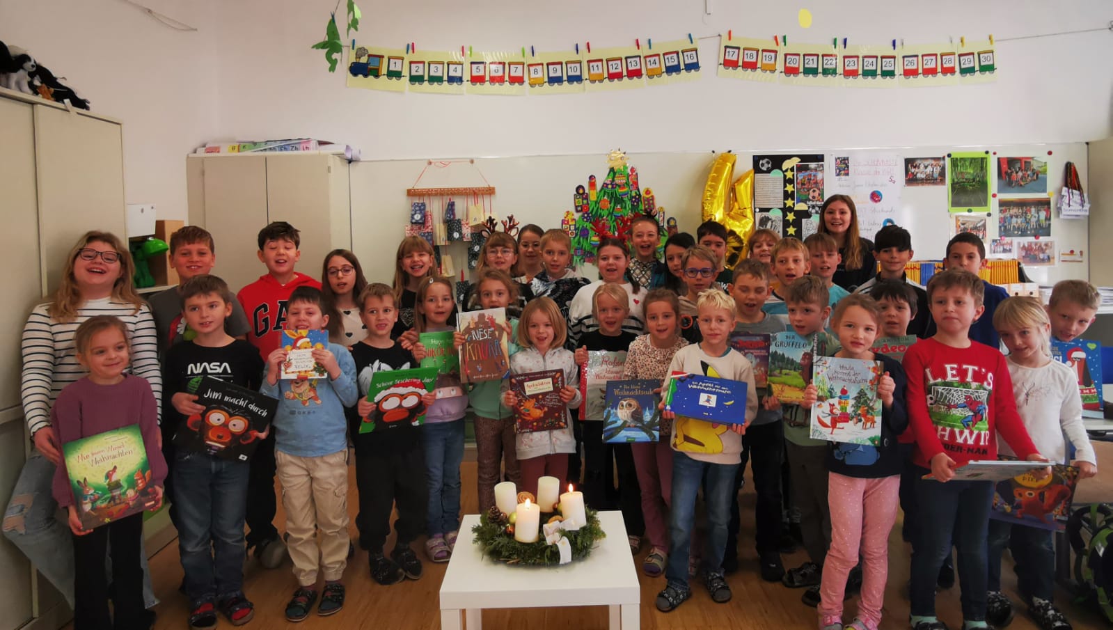 Am 10. Dezember war es endlich so weit: Die Schülerinnen und Schüler der 4b durften ihren kleinen Lesepartnern aus der 1a spannende und herzerwärmende Weihnachtsbücher vorlesen. Schon Tage zuvor hatten sich die Großen darauf gefreut, ihre Lieblingsgeschichten mit den Erstklässlern zu teilen – und heute war die Vorfreude kaum auszuhalten.