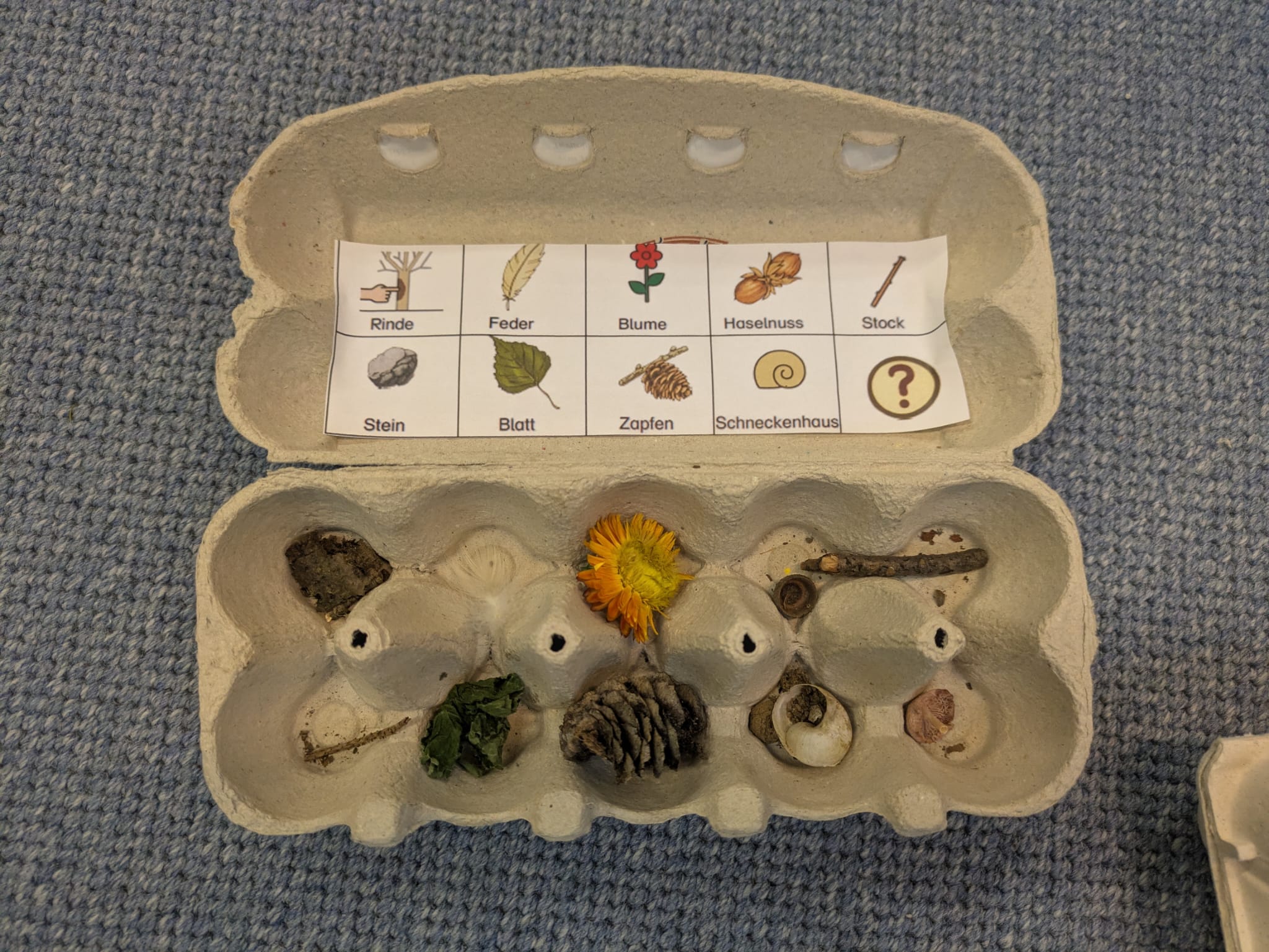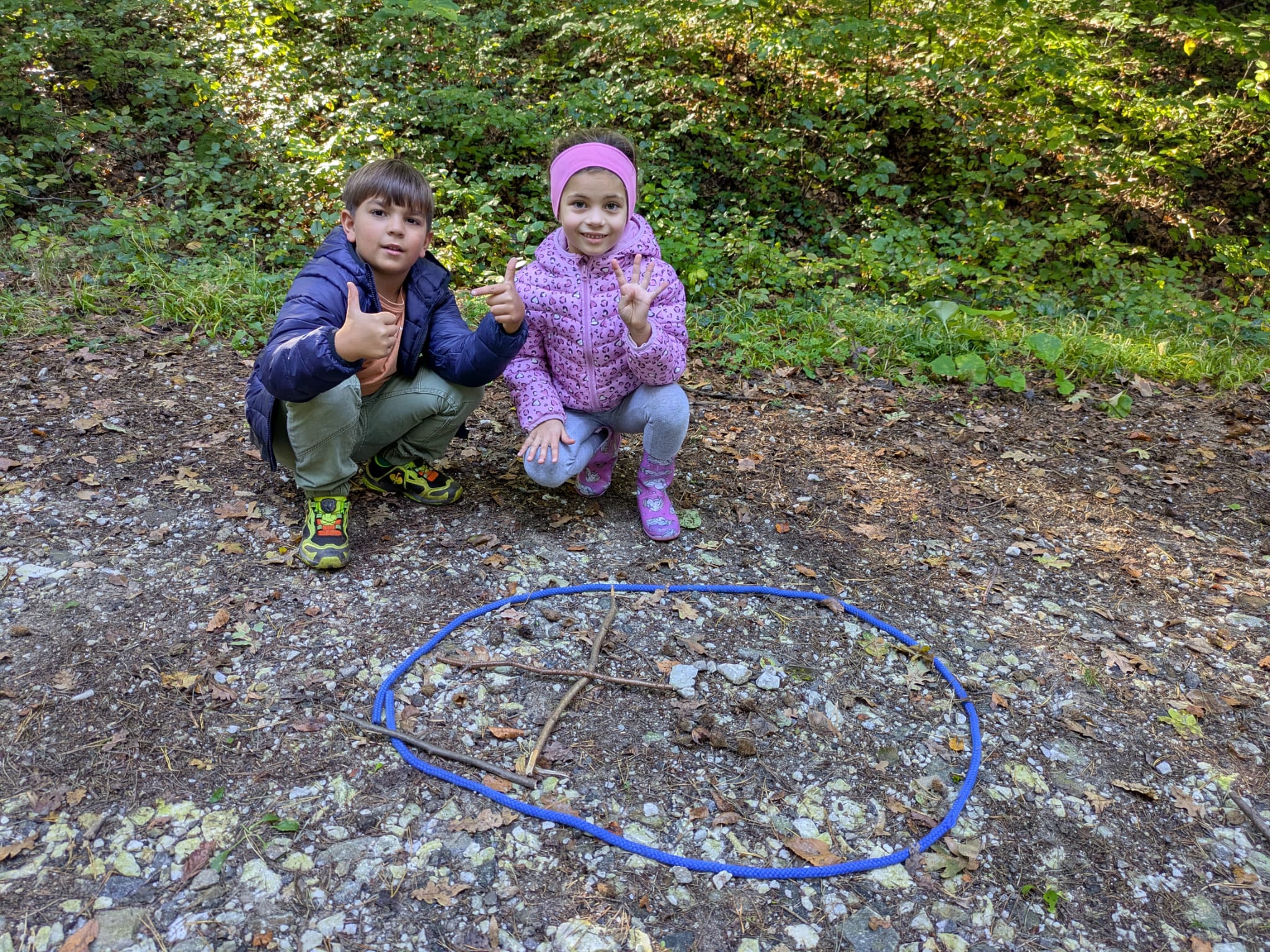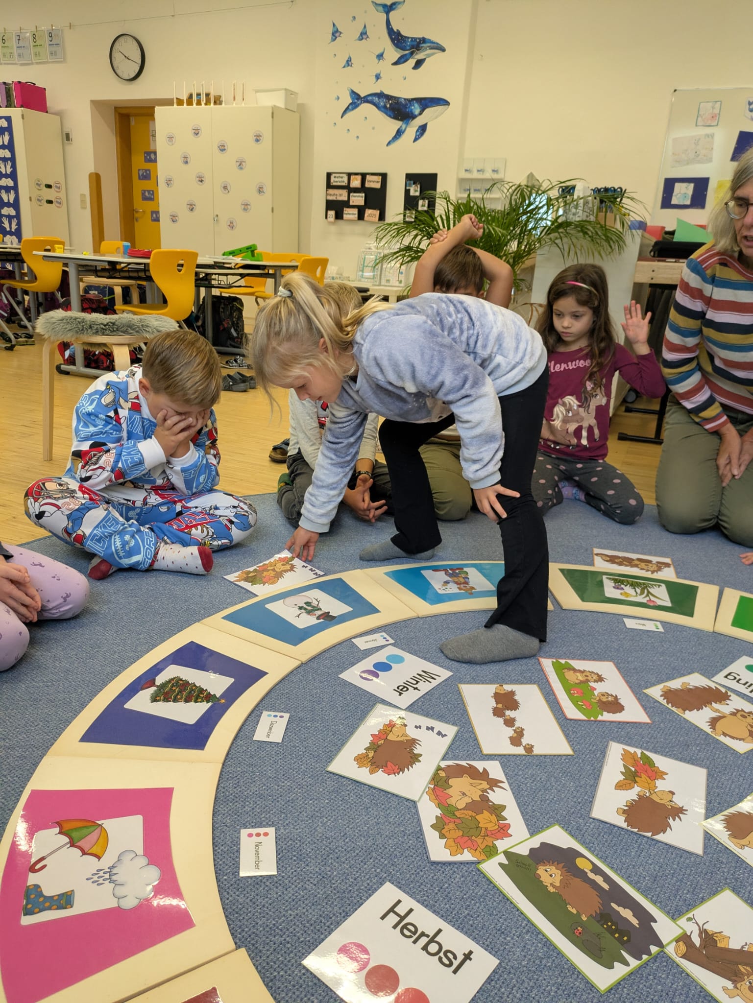 Bei so schönem Herbstwetter wird auch die eine oder andere Mathematikstunde ins Freie verlegt – dort werden mit Naturmaterialien Ziffern und Mengen gelegt.