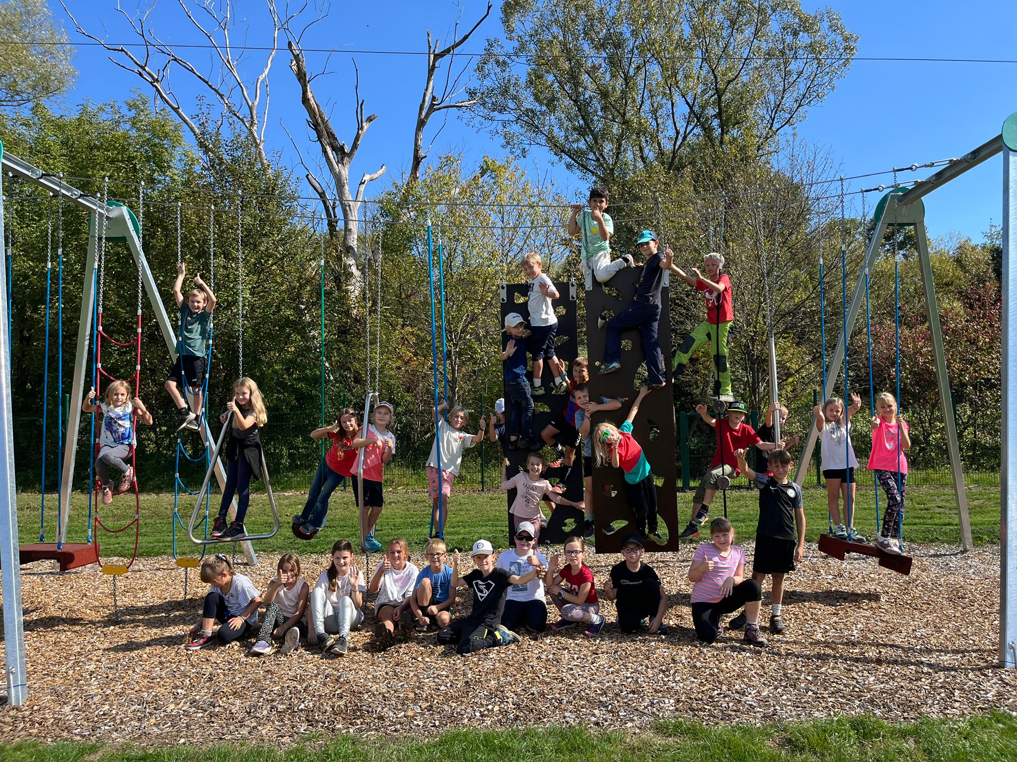 Gemeinsam mit der 3a machten wir uns auf den Weg zum neuen Spielplatz in Krottendorf.